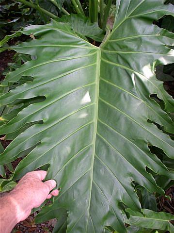 The leaf you photographed is not as deeply divided as the ''modern'' plants of P. bipinnatifiduum (A.K.A. P.''selloum") which are produced commercially these days in the thousands by tissue culture. We must keep in mind that ALL these thousands of plants are clones of just one plant, probably selected for its leaf shape and divisions. The plant in your photo, based on speculation on its origins from the old orchid jungle, would pre-date the tissue culture, and would have been produced by hand-pollination. I have spoken with some of the guys who used to produce plants of P. ''selloum'' (= P. bipinnatifidium) in commercial quantities by hand pollination/seed. They all had large mature plants or ''breeders'' which they hand pollinated, and the seed was collected, washed and sown . The resulting plants from seed obviously showed genitic variations to the leaf shape, size, and color not seen in todays tissue cultured plants.