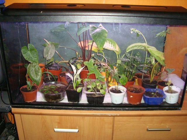 aquarium with a plastic cover.