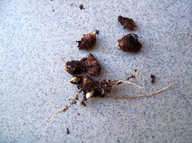 Photo 7: In the soil I found a few healthy tubercles (offsets), some of them with healthy roots