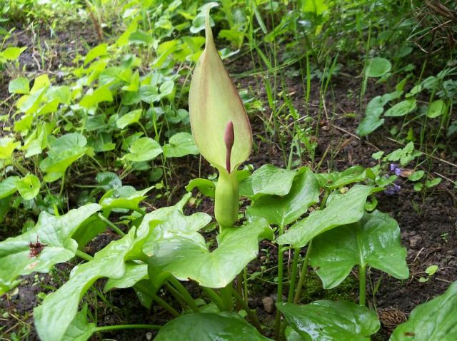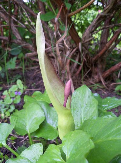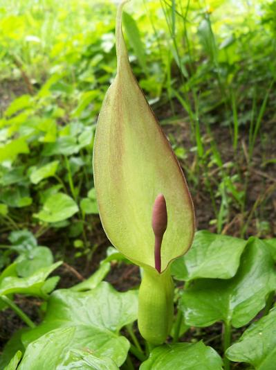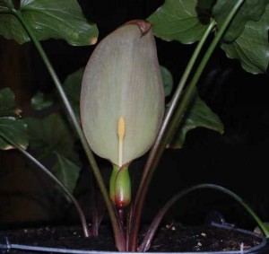 has a purple appendix and dark male flowers.